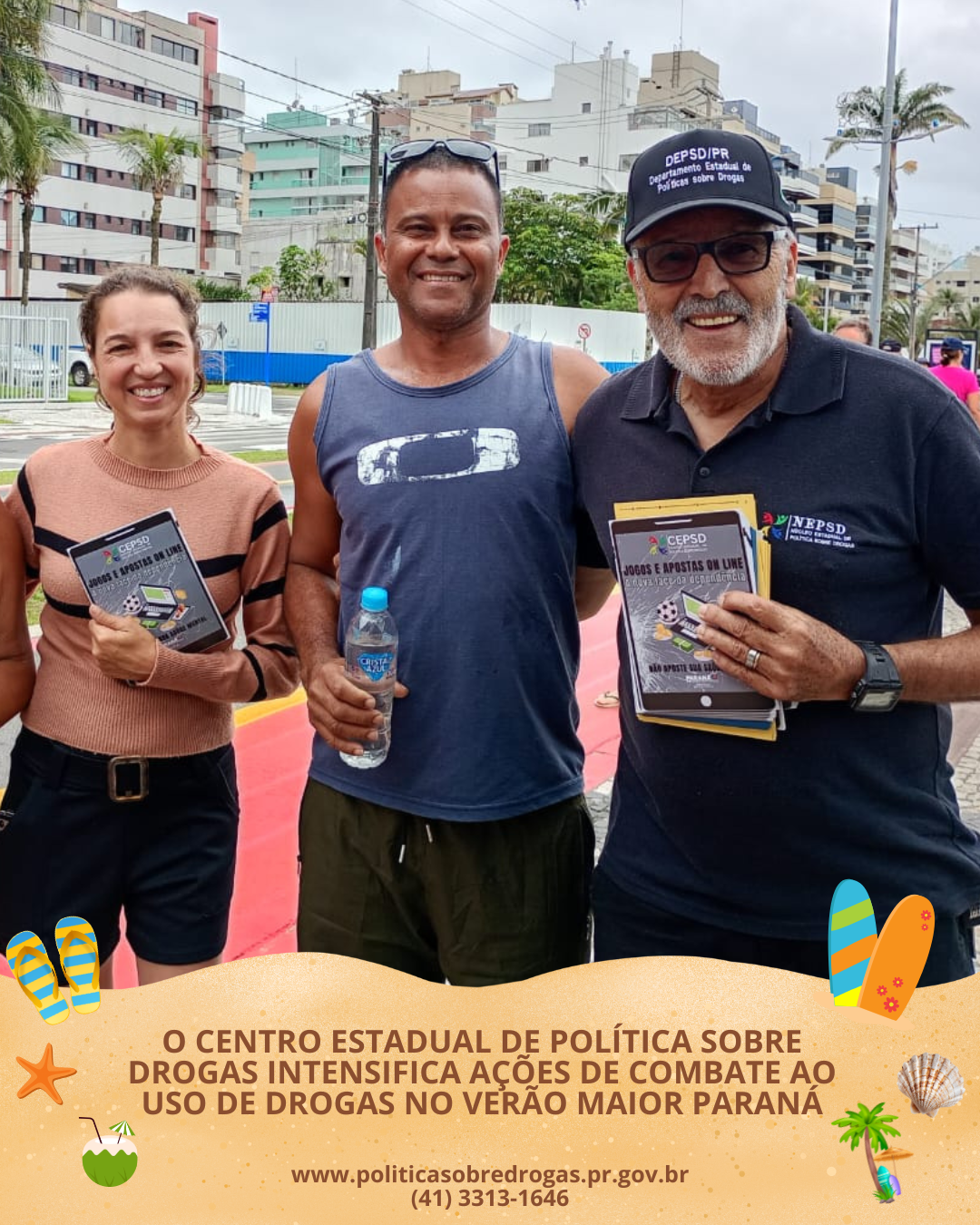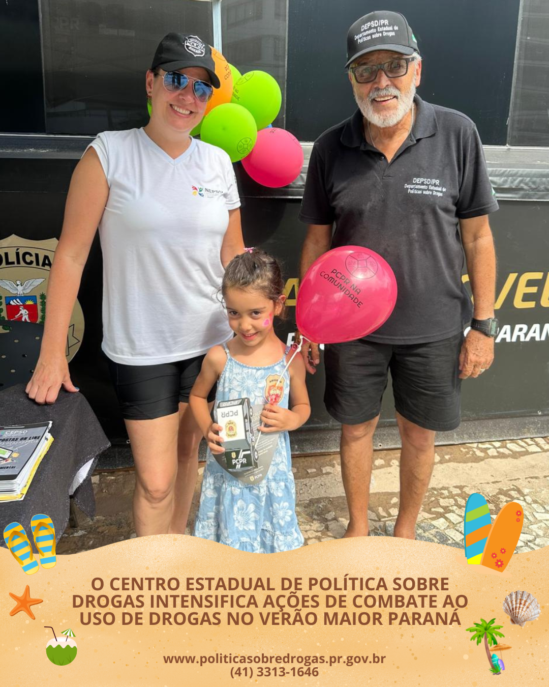 O Centro Estadual de Política Sobre Drogas (CEPSD), vinculado à Secretaria de Estado da Segurança Pública do Paraná, está participando ativamente das ações do Verão Maior Paraná, com atividades de conscientização e prevenção ao uso de drogas lícitas, ilícitas e do cigarro eletrônico no Litoral do Estado.