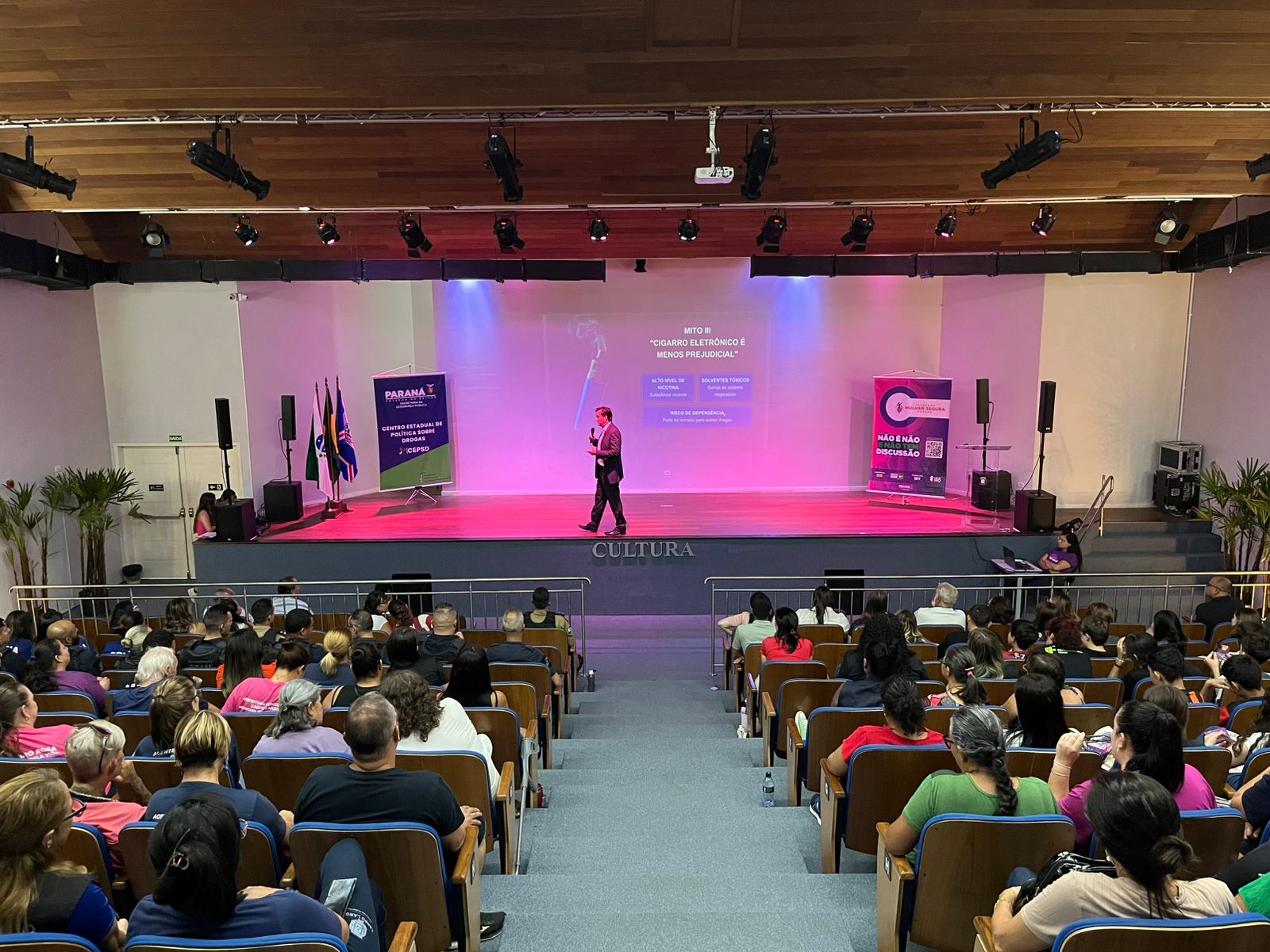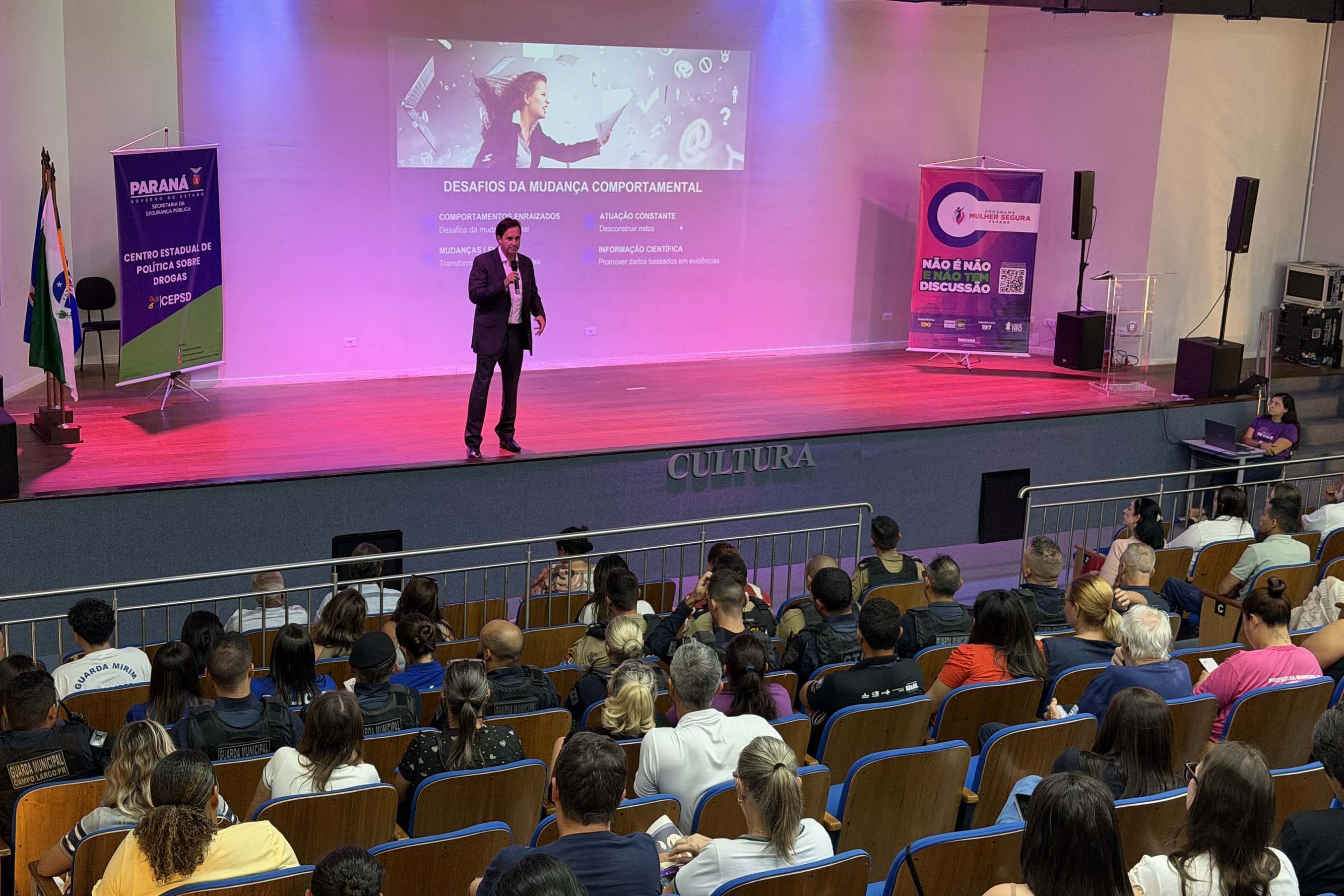 CONSCIENTIZAÇÃO SOBRE DROGAS – Ainda durante a programação em Campo Largo, foi realizada a palestra “Prevenção ao uso de drogas”, conduzida pelo coordenador do Centro Estadual de Política sobre Drogas (CEPSD), delegado Renato Figueiroa. Ele ressaltou o papel da ciência como base para a formulação de políticas preventivas e para a mudança de comportamentos sociais.
